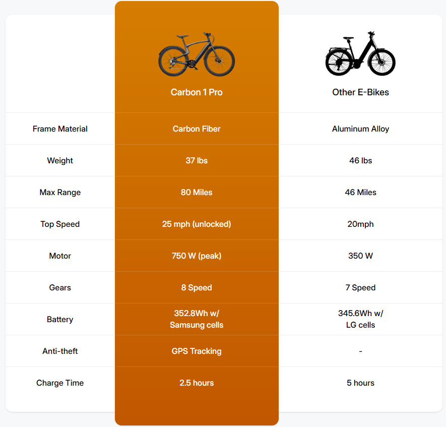 A joy to pedal even without electric assist! Ride like a regular bike while easily covering more miles. For urban ease, Carbon 1 Pro prioritizes a detachable battery — a rarity among lightweight e-bikes, making it the optimal choice for city dwellers.