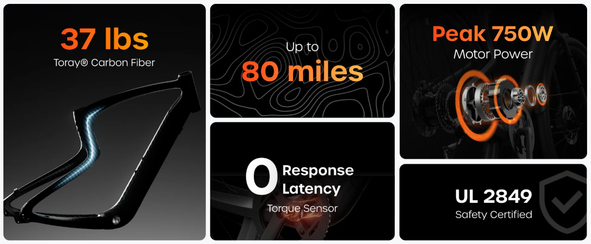 A joy to pedal even without electric assist! Ride like a regular bike while easily covering more miles. For urban ease, Carbon 1 Pro prioritizes a detachable battery — a rarity among lightweight e-bikes, making it the optimal choice for city dwellers.